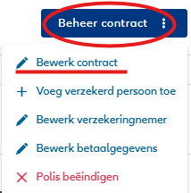 1. Zodra de polis is geopend, klik je rechtsboven op de knop 'Beheer contract'.