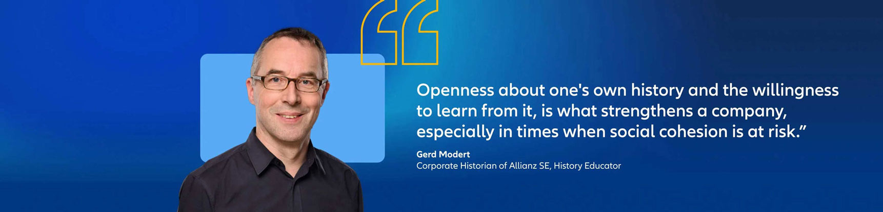 Erst ein halbes Jahrhundert nach dem Ende des Zweiten Weltkriegs und der Shoah, angesichts einer Sammelklage und des Drucks der Weltöffentlichkeit, begann die Allianz, die dabei war, sich zu einem globalen Unternehmen zu entwickeln, ihrer Geschichte wirklich ernst zu nehmen: sie wissenschaftlich aufarbeiten zu lassen, aus ihr zu lernen, materielle Entschädigung zu leisten und Verantwortung zu übernehmen.