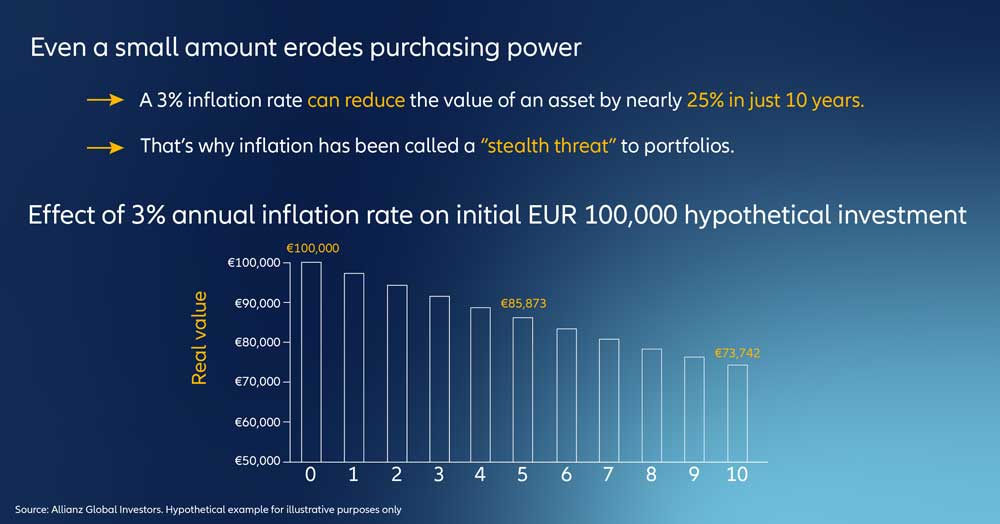 "Das Verständnis der Einflussfaktoren für die Renditen von Staatsanleihen und die Nutzung dieser Instrumente sind entscheidende Fähigkeiten, wenn die Inflationsaussichten unsicher sind. Denn sie ermöglichen es aktiven Managern, sowohl von steigenden als auch von fallenden Inflationserwartungen zu profitieren. Dies kann entweder durch direkte Investitionen in die Inflation oder in Kombination mit anderen Risikoprämien als Teil eines ganzheitlichen Ansatzes für die Durations- und Kurvenpositionierung bei Staatsanleihen erreicht werden", erklärt Jan King, Produktspezialist, Fixed Income bei AllianzGI.