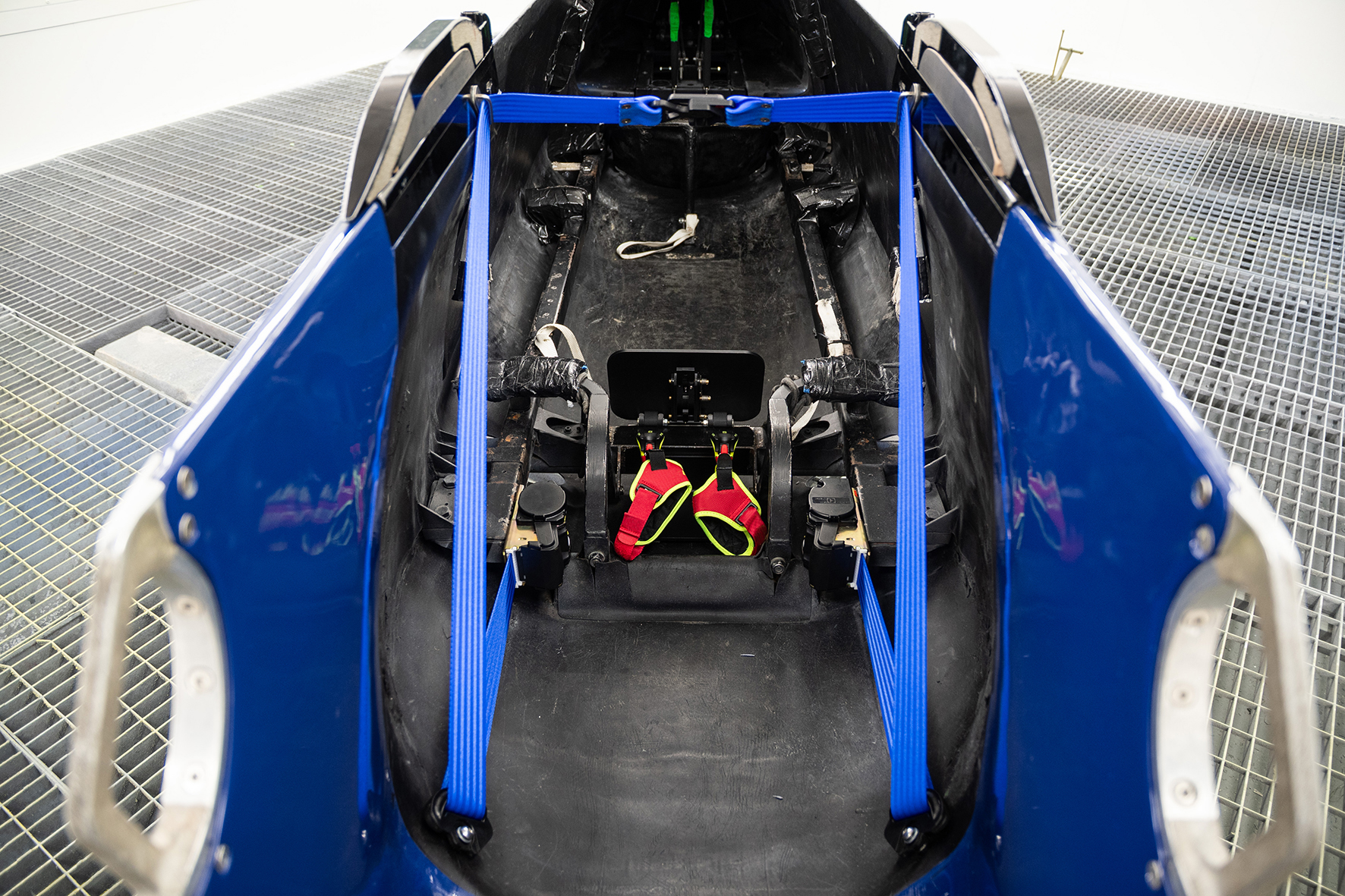 Der Athlet in der Position 2 wird durch das HIP-System geschützt und hat aufgrund seiner Sitzposition ein sehr geringes Risko aus dem Schlitten geschleudert zu werden. Der Pilot ist aufgrund seiner Sitzposition vor dem Herausfallen aus dem Schlitten ausreichend gesichert.