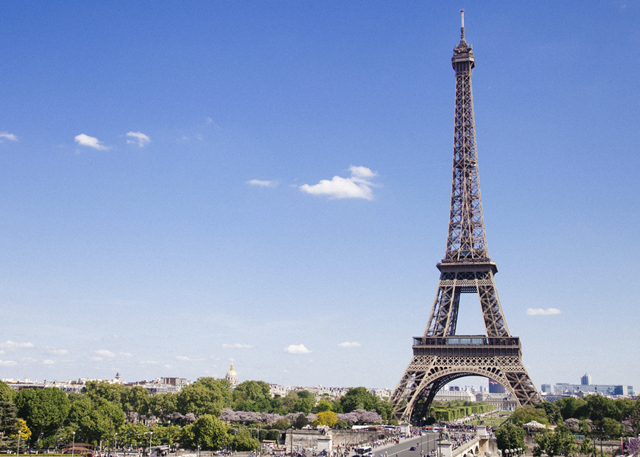 A view of the Olympic event happening across the bridge on the Seine River and Eiffel Tower in the background
