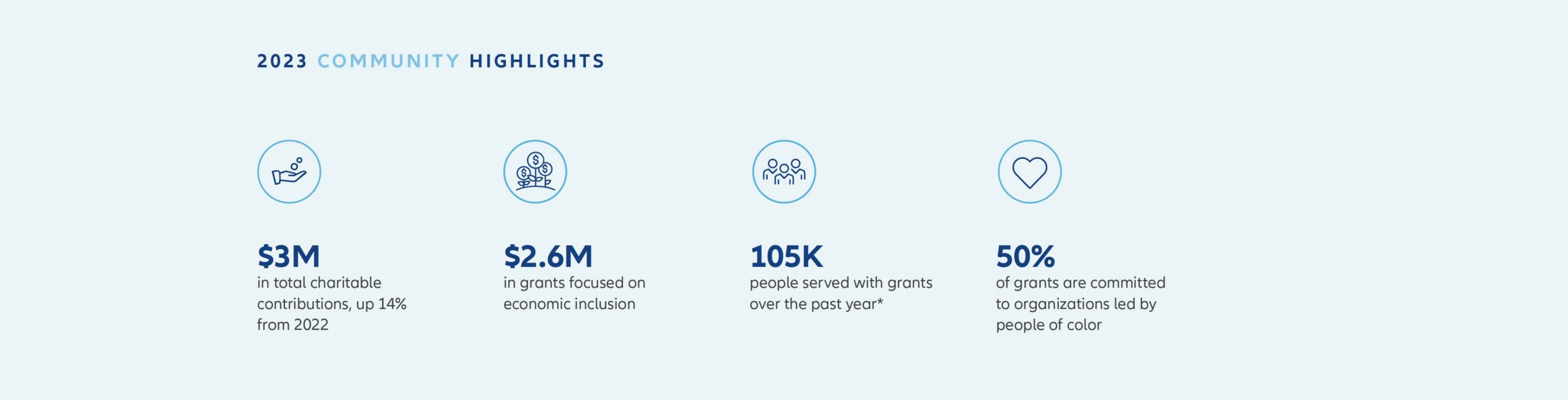We support partners across the journey to a strong tomorrow by focusing on financial stability, financial sustainability, and financial security. In 2023, we made $3M in grants, reaching more than 105,000 people across this journey.