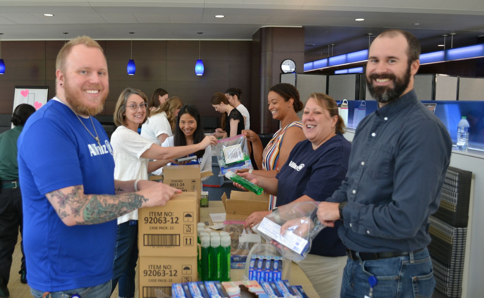 We recognize that not everyone may be able to go offsite to donate their time, so we also bring employees and community partners together right on our campus for volunteer events. We host an annual onsite hygiene packing event, which has benefitted Keystone and another one of our community partners, YouthLink. These hygiene kits mean more people in our community can access basic needs. Last summer, 300 Allianz Life, Allianz Technology of America, and Allianz of America employees came together to pack 4,200 hygiene kits for people in need. Together, they volunteered nearly 225 hours.