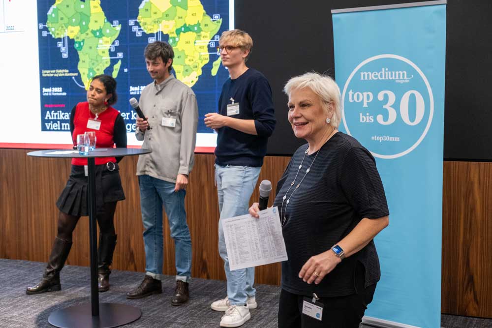 At Allianz’s Munich headquarters, the event gathered 80 young journalists – current and former award recipients from across TV, radio, print, online and data journalism. Moderated by Medium Magazin publisher Annette Milz and editor-in-chief Frederik von Castell, the half-day program featured panel discussions, presentations, and debates on emerging trends in journalism, culminating in the award ceremony and a networking dinner.
