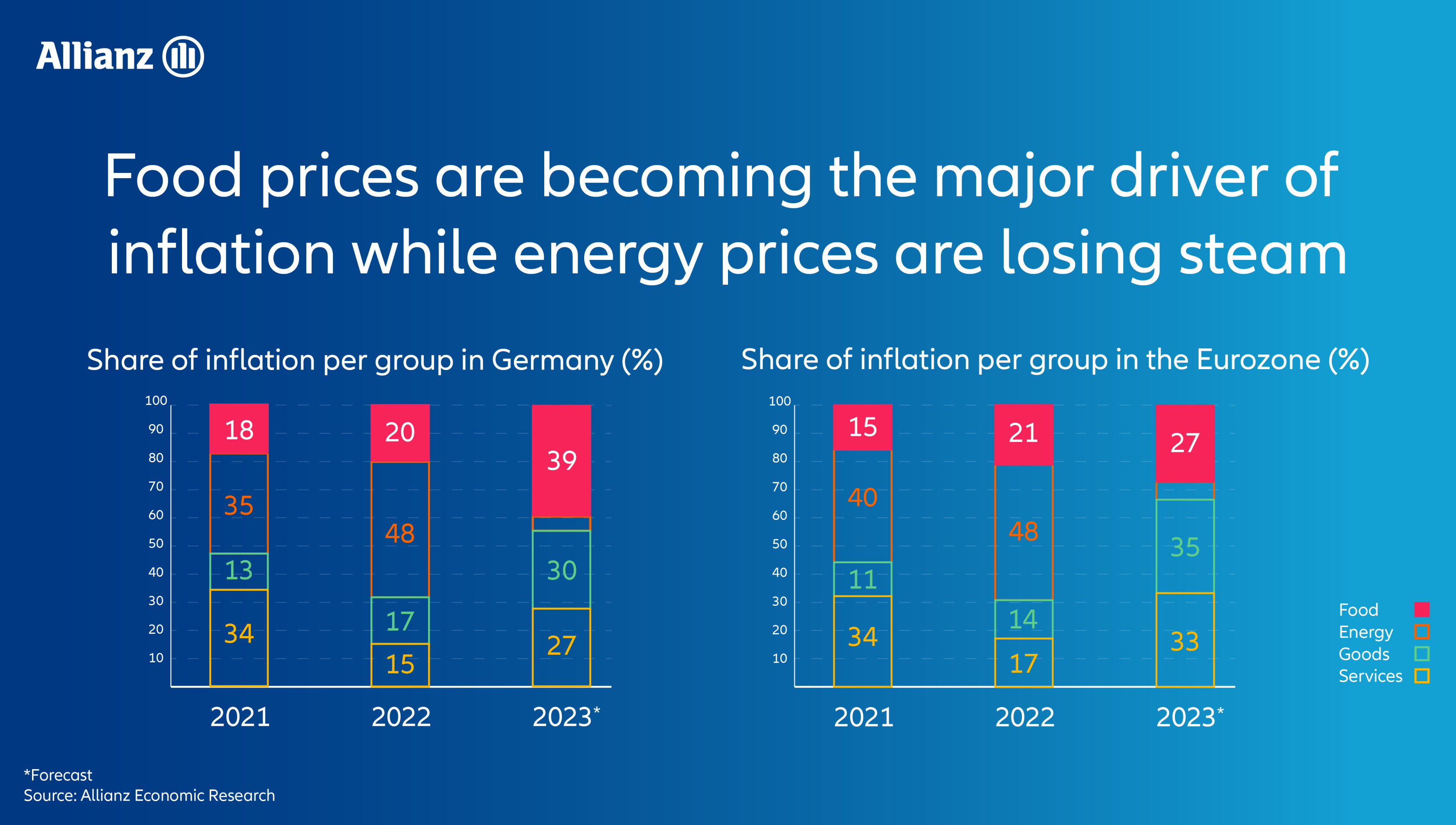 Since the beginning of this year, food prices have become a major driver of overall inflation. They are expected to account for almost a third of inflation in Europe and even more than 40% in Germany - last year it was less than a fifth (which is about twice the historical average). This puts food virtually on a par with energy costs. These in turn are also one of the main drivers behind rising food prices - but not the only one.
